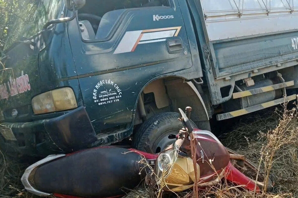 Sau khi tông vào cháu L., xe tải tiếp tục tông vào xe máy do chị L.T.P. (39 tuổi, mẹ cháu L.) điều khiển.