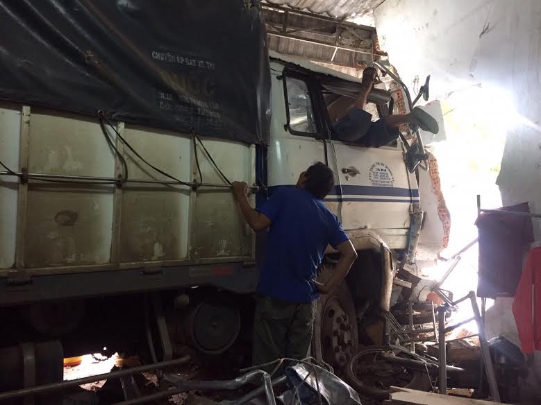 Khi đến địa điểm trên, chiếc xe tải bị mất lái lao qua phía bên trái đường tông sập nhàông Nguyễn Đức Lượng (SN 1971, trú thôn Tân Trung, xã Ea Kênh).