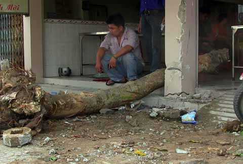 Trong cơn hoảng loạn, tài xế cố gắng đánh lái sang bên phải khiến chiếc xe tải leo lên lề đường, tông bật một gốc cây và tiếp tục lao vào một quán phở rồi lật ngang.