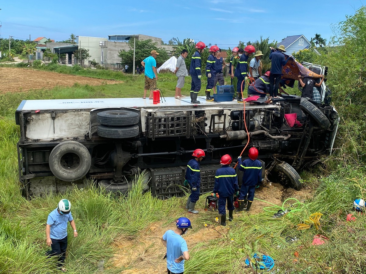 Theo thông tin ban đầu, thời điểm trên, xe tải chở hàng đông lạnh mang BKS 68C 108.92 do N.T.M. (SN 1981, thường trú tỉnh Nghệ An) cầm lái chạy hướng Bắc - Nam. Đến địa phận thuộc phường Phổ Minh, xe tải bất ngờ lao thẳng xuống ruộng và lật nghiêng.