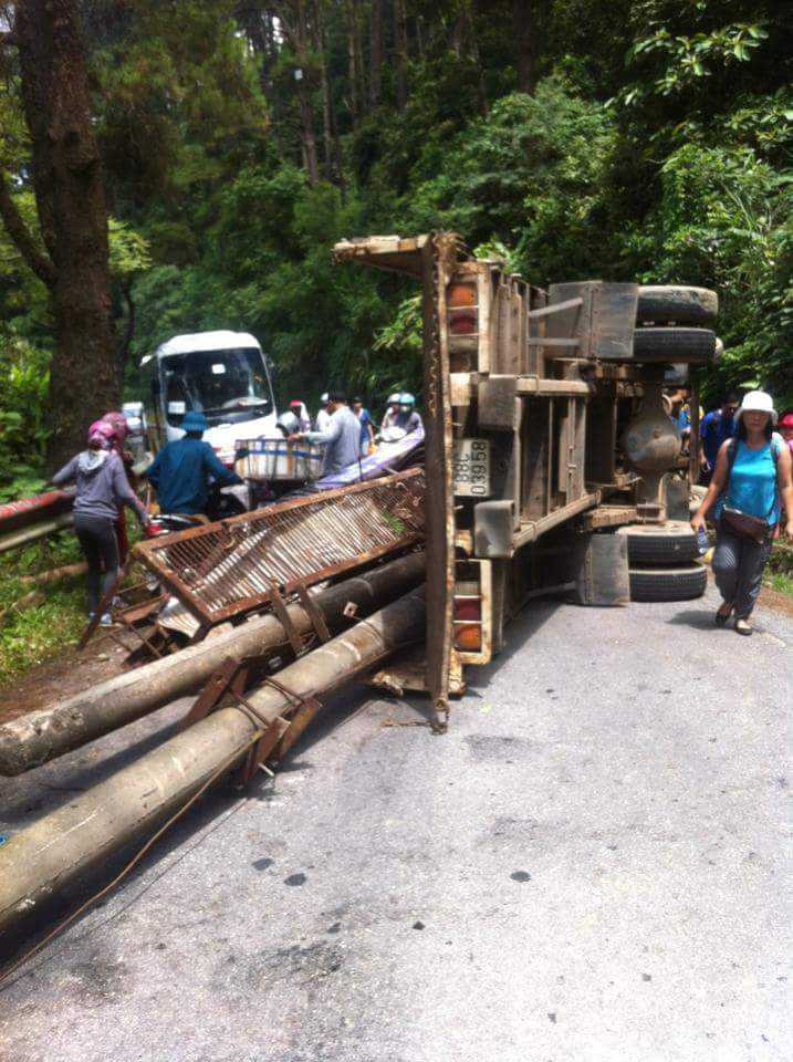 Theo một số người dân, vào thời điểm trên, chiếc xe tải mang BKS 88C-039.58 lưu thông trên quốc lộ 2B. Khi cách thị trấn Tam Đảo khoảng 10km thì bất ngờ bị lật nghiêng, chắn ngang đường. May mắn, lái xe chỉ bị thương nhẹ.