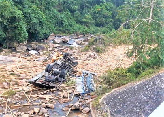 Vào thời điểm trên, xe ô tô tải BKS 37C-129.27 đang chở gỗ keo hướng xã Thông Thụ ra ngã ba Phú Phương (huyện Quế Phong) bất ngờ mất lái, lao xuống suối cạnh cầu Xốp Cháo. Tại hiện trường, chiếc xe bị biến dạng, một phần hộ lan và biển báo bên đường bị hư hỏng.