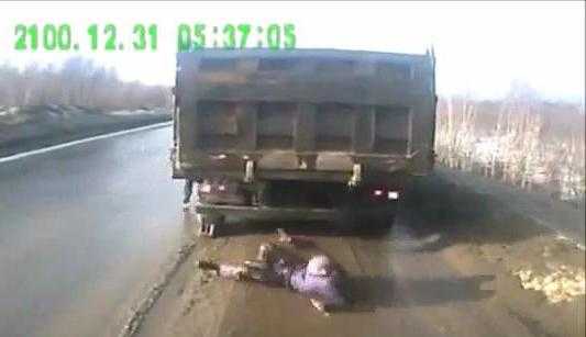 Xe tải lùi suýt chèn trúng người sửa xe trong gầm
