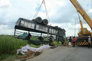 Theo đà cả hai xe lao nhanh về hướng cầu Kỳ Hà 1. Lao được vài chục mét, xe chở phân tách rời và rơi xuống vực. Chiếc xe tải bị đụng lao lên đến giữa cầu mới dừng lại.