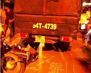 Khi đến địa điểm trên xe tải BKS 54T – 4739 do tài xế Đỗ Vinh Huy (1973, ngụ Đồng Nai) điều khiển hướng ngược chiều bất ngờ đâm trực diện vào xe máy Thanh, kéo lê người lẫn xe máy một đoạn dài rồi mới dừng lại.
