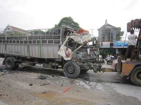 Vụ tai nạn khiến đầu xe tải 37N – 9601 bẹp dúm, tài xế Trần Văn Đạt chết tại chỗ. Phương tiện tham gia giao thông qua đây bị ách tắc cục bộ.
