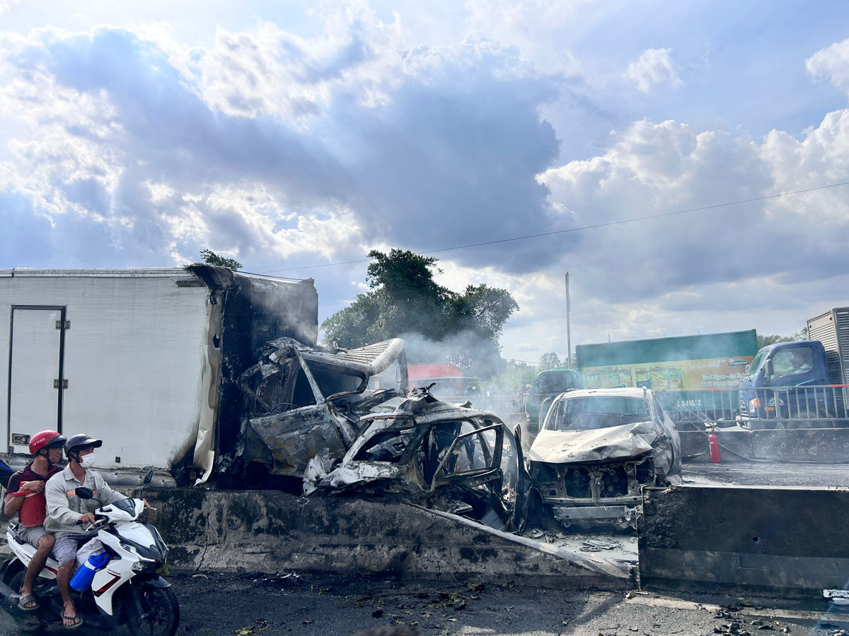 Theo Sở GTVT TPHCM, ngày 8/8, tại khu vực cầu Phú Mỹ (TP Thủ Đức) xảy ra tai nạn giao thông liên hoàn giữa nhiều ô tô dẫn đến bốc cháy làm hư hỏng tài sản của người tham gia giao thông.