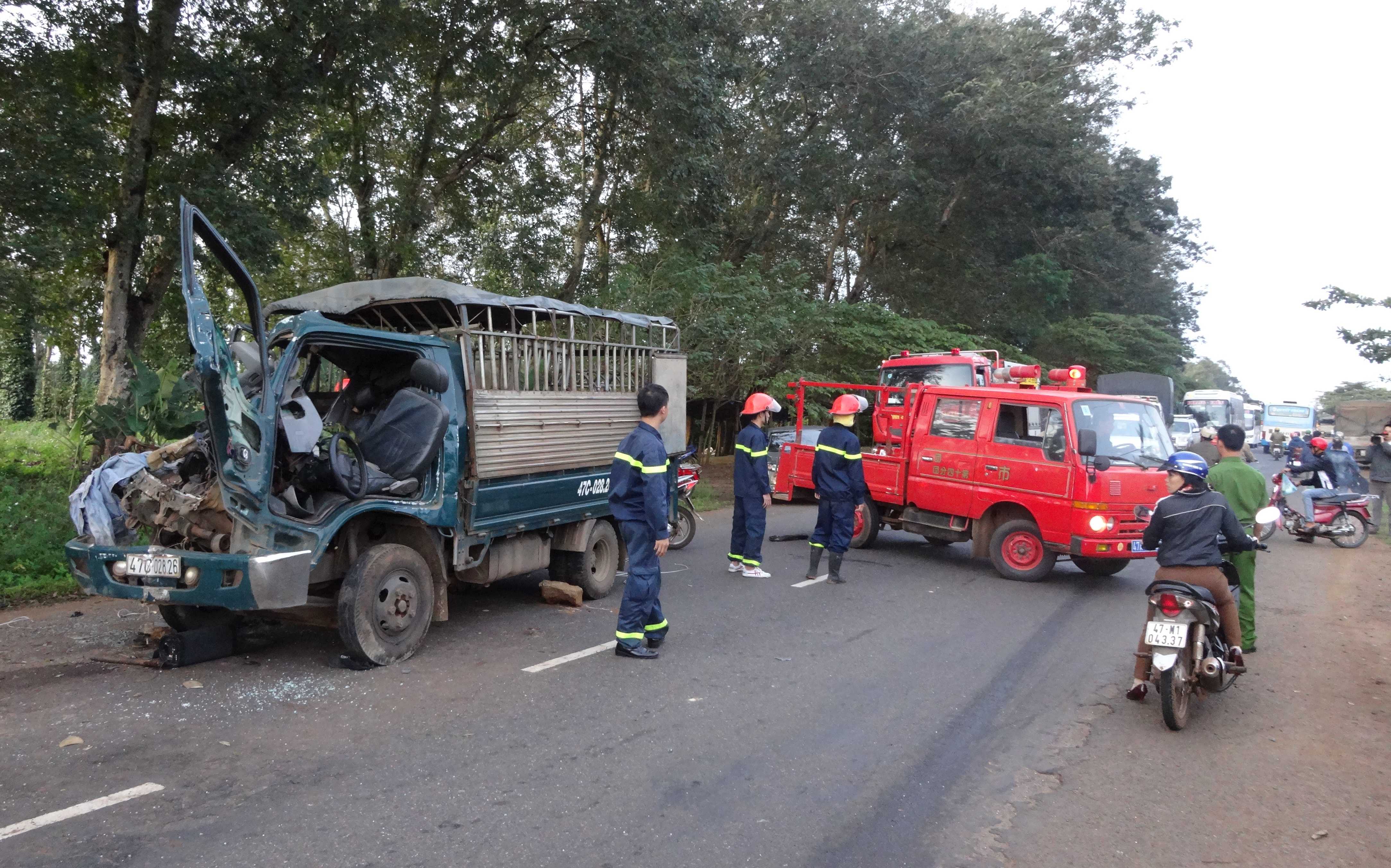 Ngoài tài xế Lâm, 2 người là Nguyễn Văn Diễn (SN 1980) và Tô Văn An (SN 1975, cùng trú tại thị trấn Ea Tling, huyện Cư Jút, tỉnh Đắk Nông) cũng ngồi trong cabin xe tải.