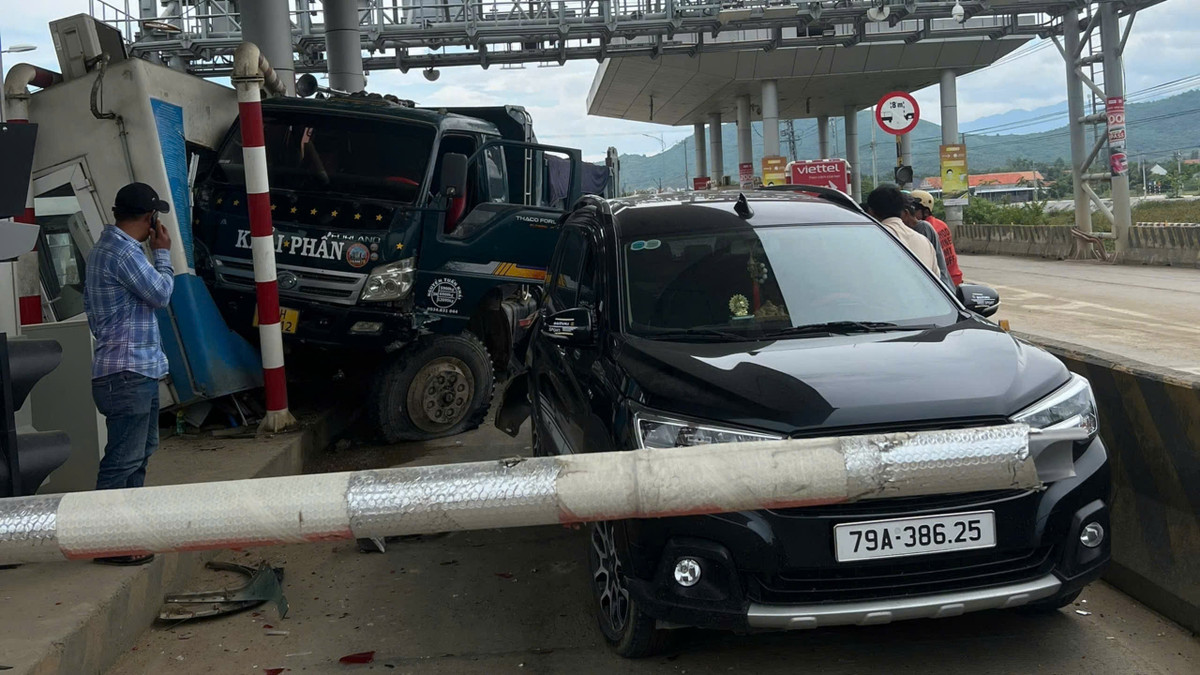Khi vào làn thứ 1 của Trạm thu phí Ninh Xuân thì xảy ra va chạm với xe ô tô con mang biển số 79A-38625 đang giảm tốc độ để barie nhận diện mở qua trạm.