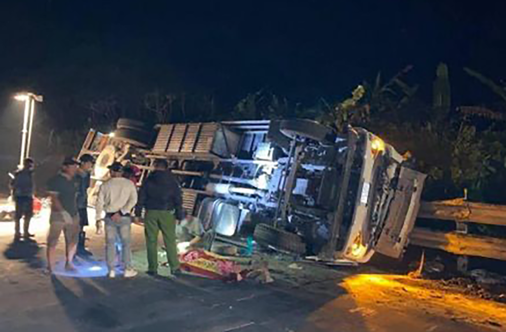 Vụ tai nạn khiến tài xế Dưỡng chết tại chỗ còn phụ xe Trọng bị thương nặng, các phương tiện hư hỏng nặng.