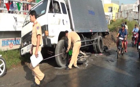 Khi lên dốc cầu Chợ Kinh Tư nửa chừng thì xe tải bị tuột dốc. Cùng thời điểm, 2 xe mô tô chạy phía sau đã bị xe tải đụng vào.