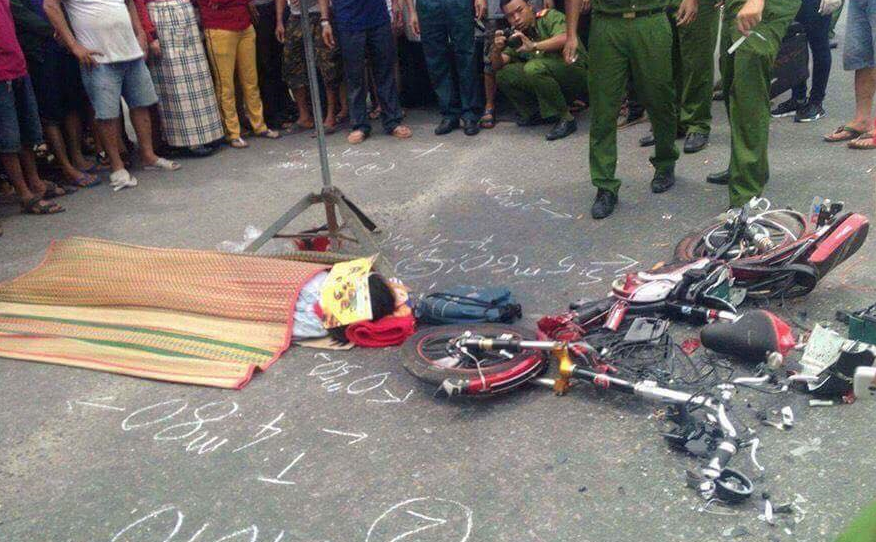 Cú va chạm khiến nữ sinh ngã xuống đường, bị xe tải cán qua người tử vong tại chỗ. Chiếc xe đạp điện bị biến dạng hoàn toàn. Vụ tai nạn thu hút nhiều người dân tập trung theo dõi khiến giao thông qua đoạn đường này bị ách tắc.