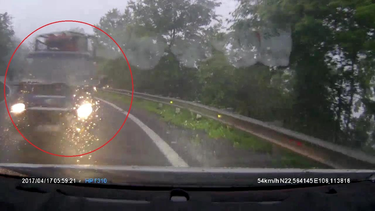 Sự việc xảy ra vào khoảng 6h ngày 17/4 trên đoạn đường đèo thuộc tỉnh Cao Bằng. Theo chia sẻ của chủ nhân đoạn clip xe tải vượt ẩu trên đèo hẹp, tài xế ô tô con, dù may mắn tránh được cú đâm trực diện nhưng xe con vẫn bị xe tải đâm móp đuôi.