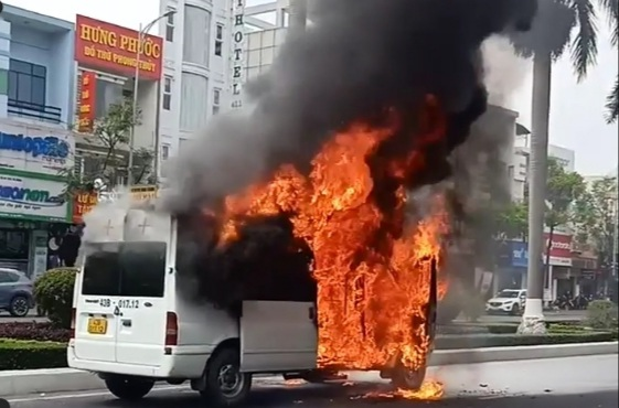 Lửa nhanh chóng bùng phát bao trùm cả xe, cột khói cao hàng chục mét.