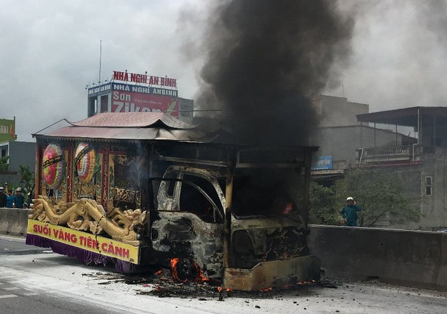 Trước đó như đã đưa tin, vào lúc 10h30, ngày 10/5, tại Km 399 trên quốc lộ 1A (thuộc địa phận thôn 3, xã Quảng Bình, huyện Quảng Xương, Thanh Hóa) xe ô tô mang BKS 36C-070.44 đang chở người quá cố đến điểm hỏa thiêu bỗng bốc cháy ngùn ngụt.