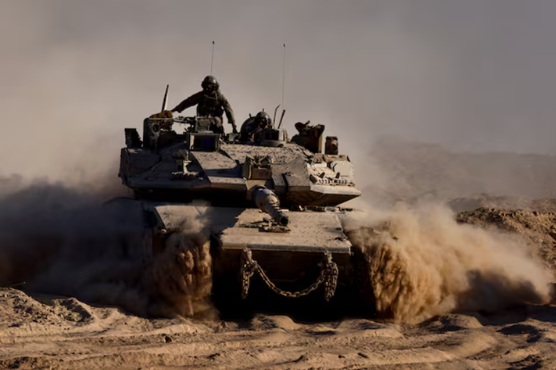 Xe tăng của Israel đang diễn tập tại biên giới Israel-Gaza. (Ảnh: Reuters)