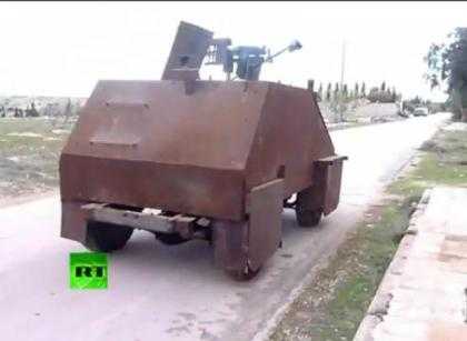 (VTC News) - Quân nổi dậy Syria tự chế tạo xe tăng nhằm phục vụ cho cuộc chiến của mình, chiếc xe thực chất là chiếc ô tô được bọc thép bên ngoài và được trang bị camera cùng súng máy.