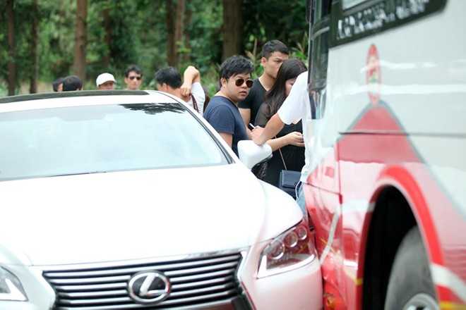 Công an giao thông có mặt kịp thời giải quyết vụ việc. Quang Lê xuống xe, hỏi thăm tình hình từng hành khách và hứa chịu trách nhiệm về sự cố.