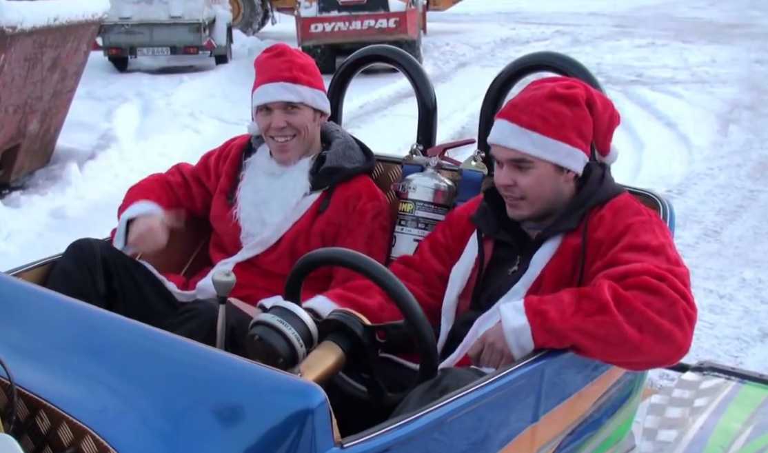 Xem video chiếc xe trượt tuyết 'tóe khói' của ông già Noel ở Thụy Điển