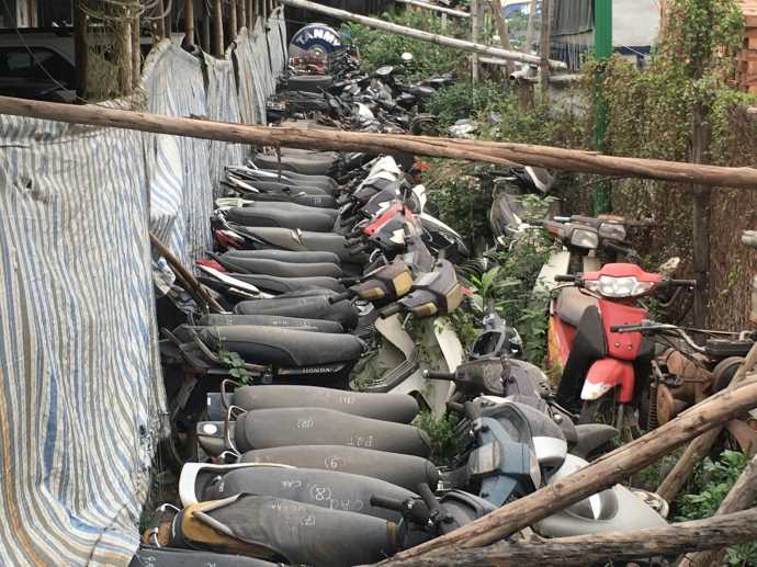 Nhiều chiếc xe máy đã bị CSGT tịch thu do không rõ chủ sở hữu.