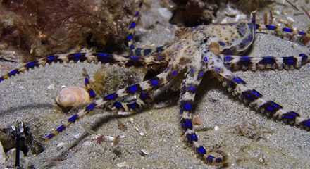 (VTC News)- Loài bạch tuộc xanh mai phục, giả dạng cỏ biển hoặc tấn công trực diện để bắt cua, loại thức ăn mà chúng ưa thích.