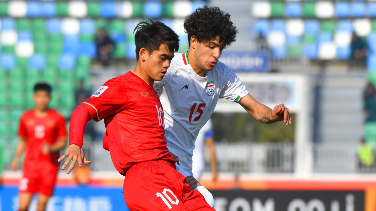 Khuất Văn Khang sút tung lưới U20 Iran.