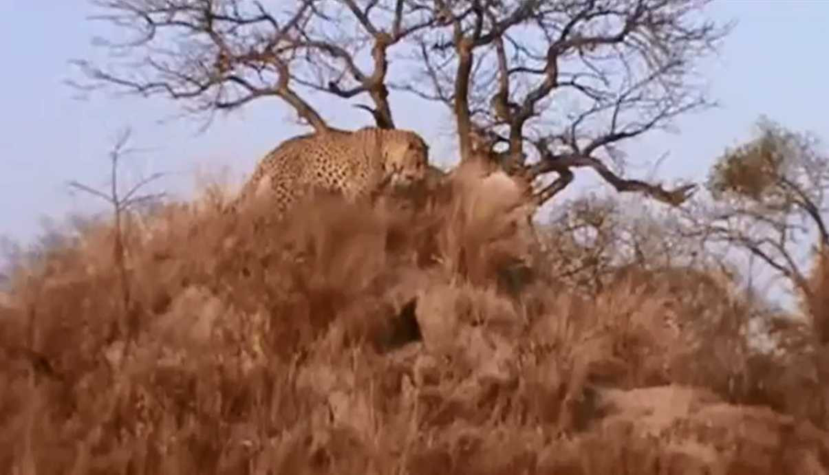 Một con báo hoa đã kiên trì mai phục trước cửa hang lợn rừng để săn bằng được con mồi.