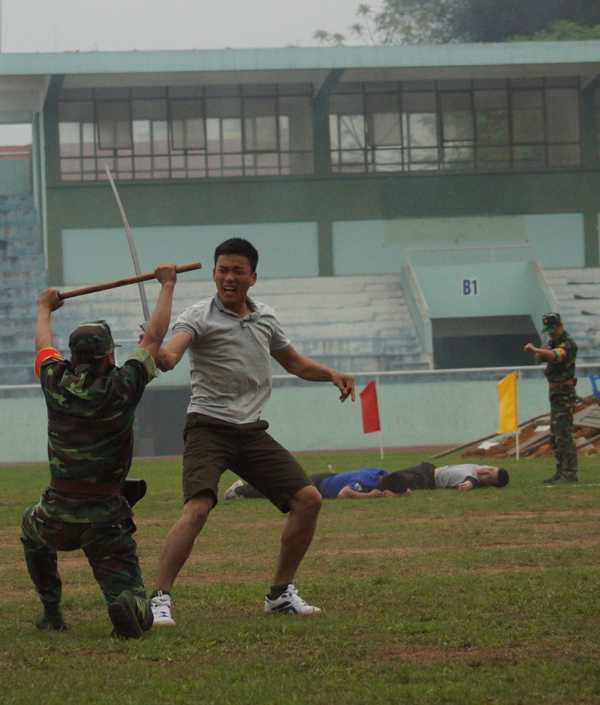 Nhờ rèn luyện khí công, thân thể chiến sĩ biên phòng có thể chịu được nhiều đòn tấn công mà không hề hấn gì.