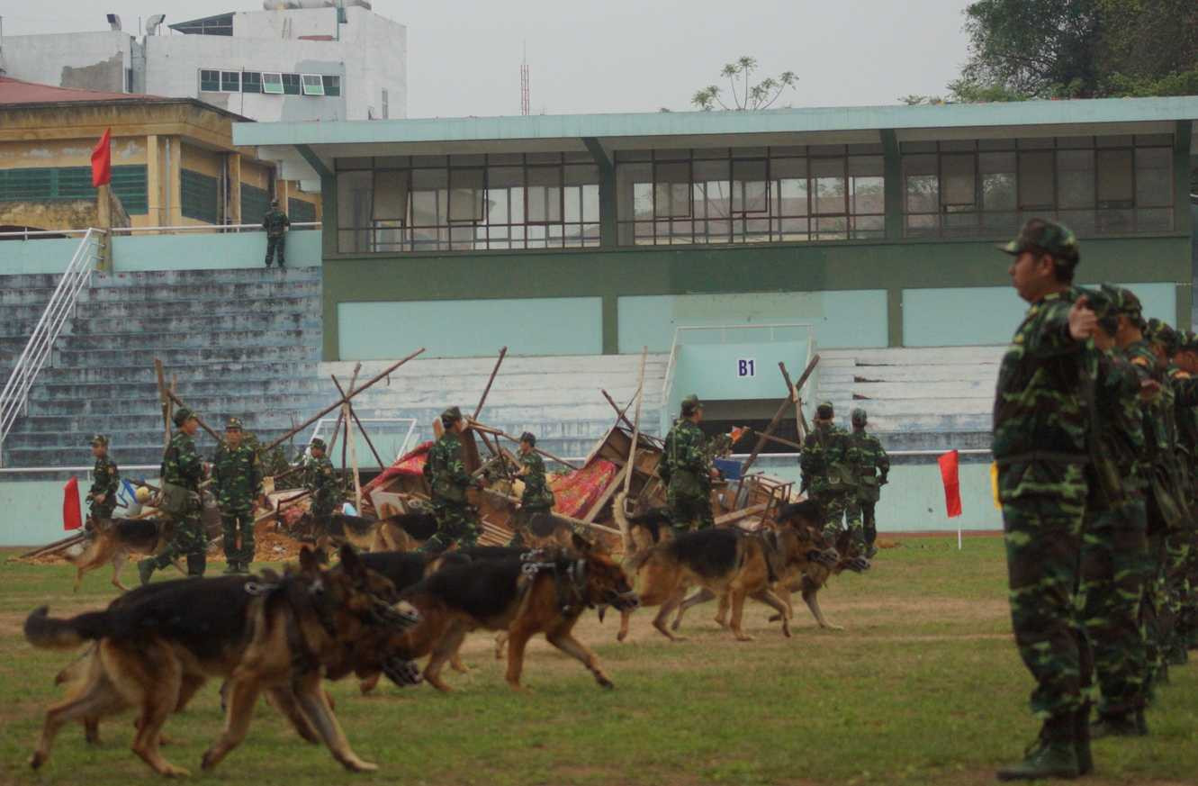 Với tình huống giả định có nhiều nạn nhân bị vùi lấp trong một vụ thiên tai, chó nghiệp vụ đã nhanh chóng xác định vị trí các nạn nhân để lực lượng cứu hộ kịp thời can thiệp.