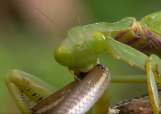 Xem bọ ngựa bắt sống rắn cỏ, chậm rãi gặm nhấm con mồi đến chết