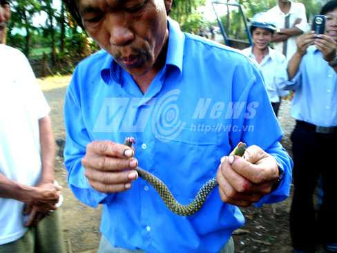 | Ông Tùy dễ dàng cắn đứt con rắn, dù nó rất dai |