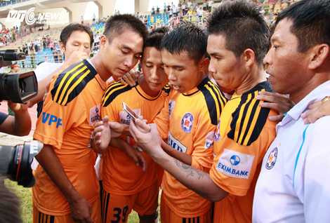 (VTC News) – Dù diễn ra cùng giờ nhưng trận đấu trên sân Ninh Binh giữa chủ nhà V.Ninh Bình và SHB Đà Nẵng lại kết thúc trước khoảng 1 phút so với trận đấu trên sân Thống Nhất giữa Sài Gòn Xuân Thành và Hà Nội T&T. Chính vì thế sau khi đánh bại V.Ninh Bình với tỷ số 3-1, các cầu thủ và BHL đội bóng sông Hàn có 1 phút "đứng tim" chờ kết quả cuối cùng ở sân Thống Nhất.