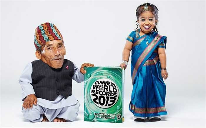 Cặp đôi thấp nhất thế giới lần đầu hội ngộ cùng ghi danh vào số kỷ lục Guinness 2013. Cô gái Jyoti Amge 18 tuổi với chiều cao 62,8 cm trong khi ông lão Chandra Bahadur Dangi 72 tuổi chỉ cao 54,6cm.