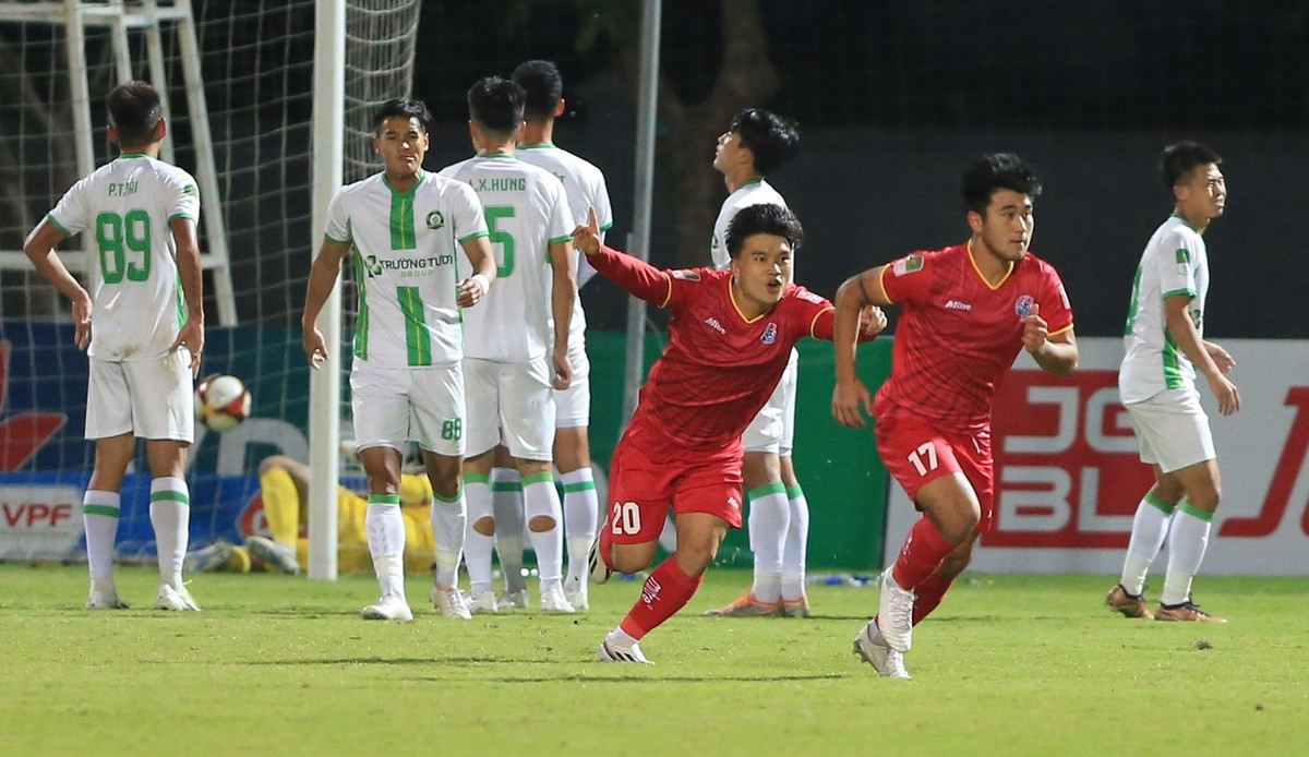 Thái Bá Đạt sút phạt đẹp mắt khiến thủ môn CLB Bình Phước không thể cản phá.