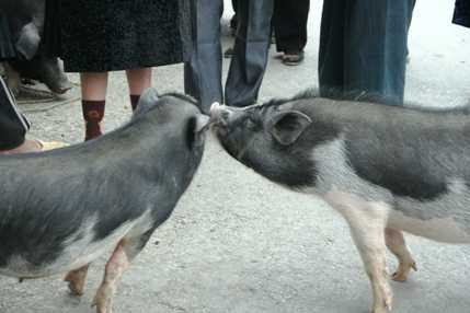 | Trong chợ phiên Mèo Vạc, ngoài các nông sản, đồng bào dân tộc còn đem rất nhiều lợn Mán để trao đổi buôn bán. |