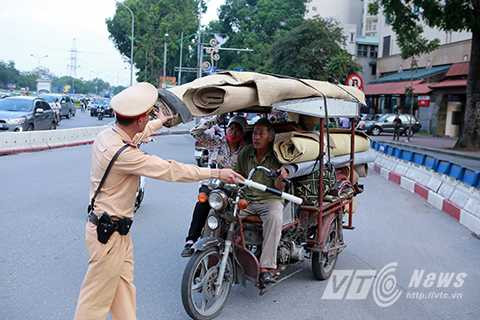 | Xe ba gác bị dừng để xử phạt lỗi đi ngược chiều |