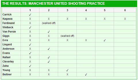 Đáng buồn nhất có lẽ là Shinji Kagawa. Tiền vệ người Nhật bất lực trong cả 6 lần dứt điểm, và anh là người duy nhất không thể hoàn thành được thử thách mà ông thầy David Moyes đề ra.
