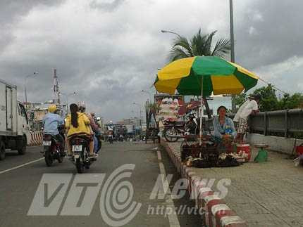 Gà được bày bán trên cầu Chợ Cầu, địa phận giáp ranh giữa quận 12 và quận Gò Vấp