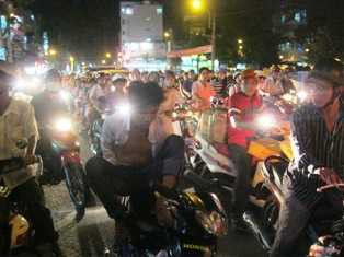 Rượt đuổi trên xe máy chừng 300m, đến ngã tư 3/2 - Thành Thái (P.4, Q.10), tên ngồi sau bất ngờ nhảy xuống xe, tên cầm lái phóng xe mất dạng.