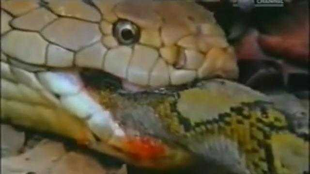 Xem hổ mang chúa tung cú đớp sấm sét, nuốt chửng trăn