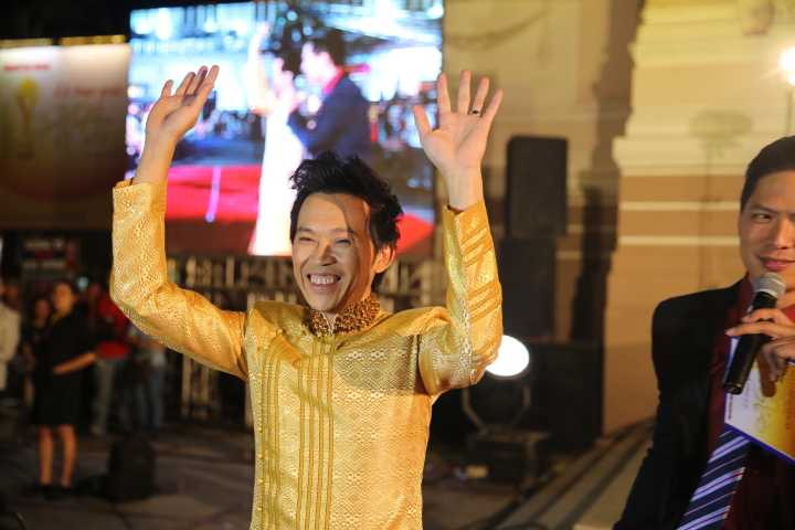 Hoài Linh giơ tay cảm ơn những người đã ủng hộ mình.