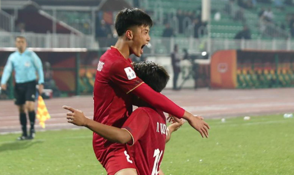 Phút bù giờ thứ 2 của hiệp 1, Đức Việt cướp bóng từ chân cầu thủ đối phương trước khi Văn Trường có pha chọc khe rất hay để Quốc Việt thoát xuống, dứt điểm đẳng cấp mở tỉ số trận đấu cho U20 Việt Nam. Đây là bàn thắng thứ 2 của U20 Việt Nam và cá nhân Quốc Việt ở giải đấu năm nay.