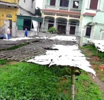 | Khu vực chế biến bóng bì của một hộ gia đình tại thôn Bình Lương |