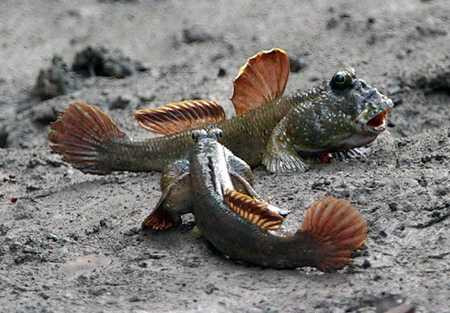 (VTC News) - Nhờ khả năng hô hấp đặc biệt, cá thòi lòi có thể ở trên cạn rất lâu và sẵn sàng cho cuộc 'đại chiến' sinh tử với đồng loại.