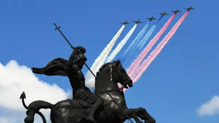 Theo đó, 75 máy bay và trực thăng bay qua Quảng trường Đỏ, bao gồm: Su-35, Su-30, MiG-29SMT, Su-57, máy bay ném bom Su-24M2, Su-34, máy bay tấn công Su-25, tiêm kích MiG031, máy bay mang tên lửa Tu-95 và Tu-160, và các máy bay trực thăng Mi-35M, Ka-52 và Mi-28.