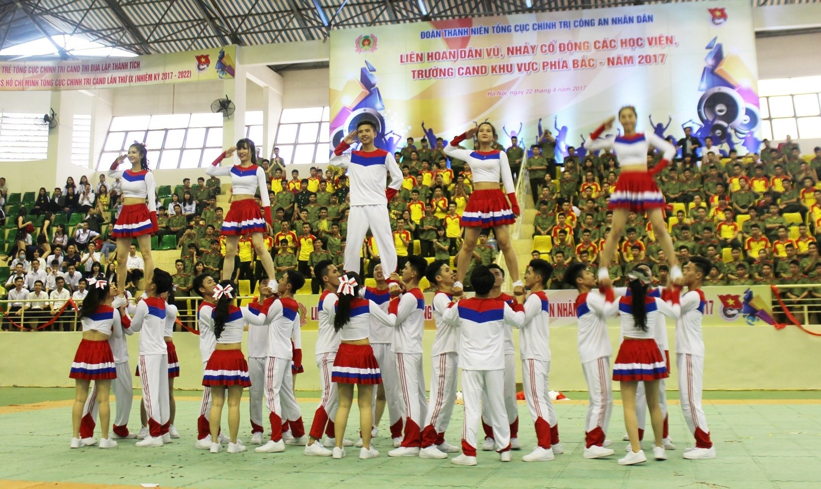 Năm nay, Liên hoan dân vũ, nhảy cổ động các học viện, trường công an nhân dân có sự góp mặt của 1.000 đoàn viên, sinh viên thuộc 10 trường học viện, đại học công an nhân dân khu vực phía Bắc.