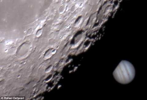 Chuyên gia thiên văn Rafael Defavari đã sử dụng kính thiên văn cực mạnh quay phim trên bầu trời ngay đúng vào lúc hành tinh lớn nhất trong hệ mặt trời đang bị vệ tinh của trái đất che khuất.