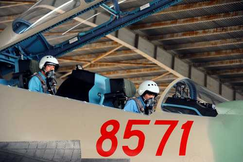 Sau những tiếng gầm rú inh tai, từng chiếc máy bay tiêm kích đa năng Su-30MK2 lao vun vút trên đường băng rồi bay lên trời.