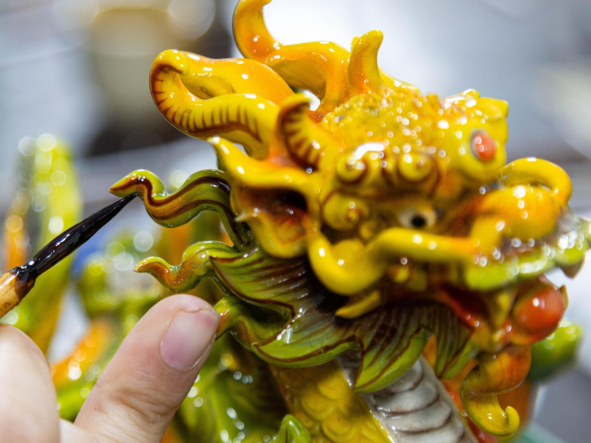 Chiêm ngưỡng rồng dát vàng được các nghệ nhân làng gốm Bát Tràng chế tác.