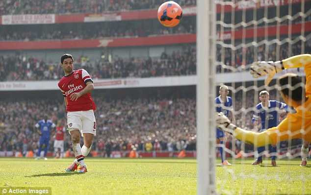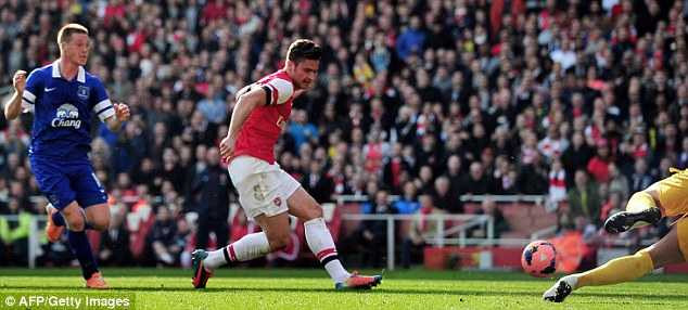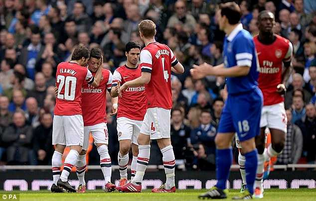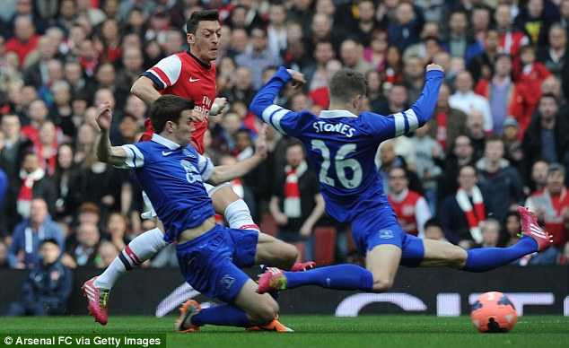 Trước đó, phút thứ 5, từ một pha tấn công trung lộ, Cazorla khôn ngoan vượt qua cầu thủ Everton, chuyền bóng thông minh cho Ozil băng xuống dứt diểm chéo góc đầy lạnh lùng mở tỷ số.